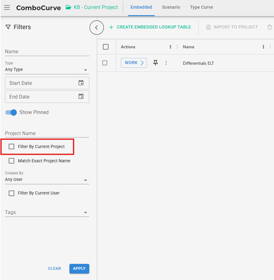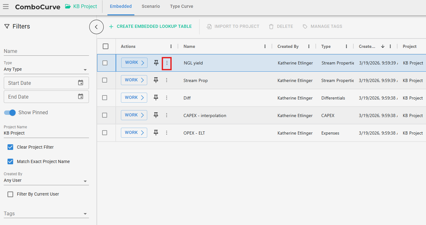 Note: this is the same functionality for all lookup tables (Embedded, Scenario, and Type Curve)