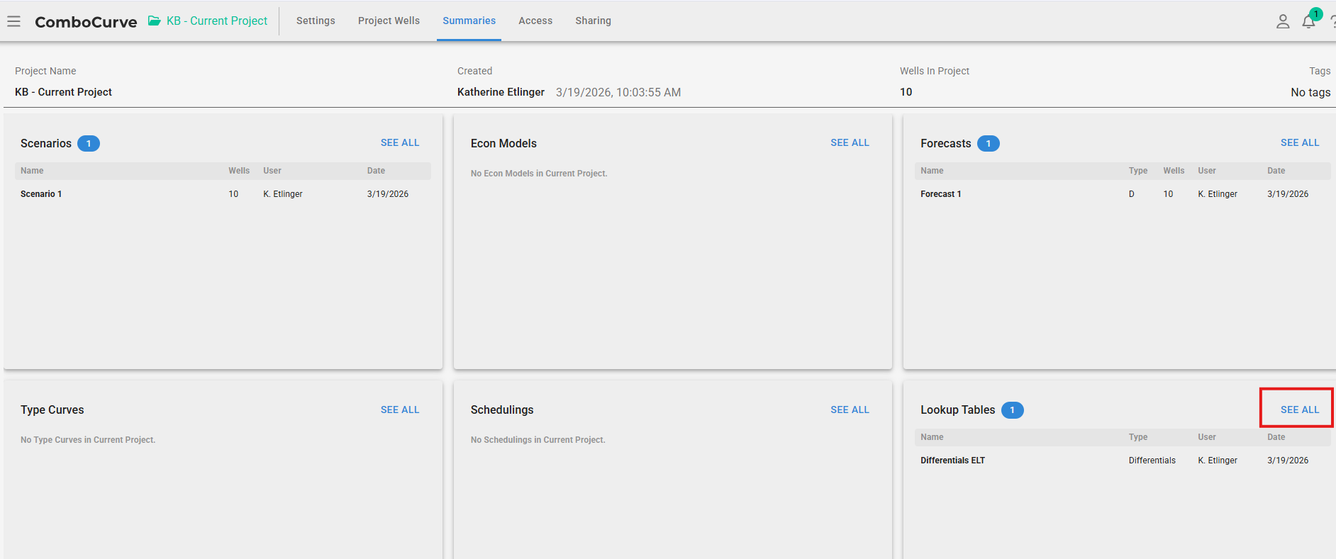 To import a Lookup Table from another project into your current project select See All on the Lookup Table Module in the project you are wanting to import the table into.