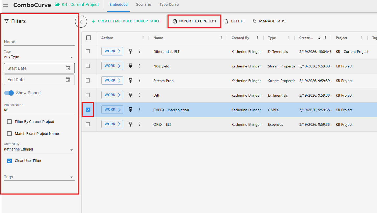 Still in Filters you can then search for the Lookup Table by Name, Type, Project Name, Created By, and/or Tags. Once you find the table(s) you are wanting to import and click Import To Project at the top.
