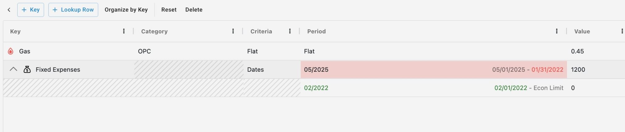 NOTE: Since we do not allow daily economics and therefore do not allow expenses, all date headers used in the Period column when criteria is “Dates” will be interpreted as the month of that given date. Therefore, a date header referenced as 10/15/2025 will be interpreted as 10/2025 just like a date header of 10/31/2025 or 10/01/2025. Additionally, if two date headers in the same month are referenced in the same time series, if will fail time series validation and the row of expenses will be excluded from economics (i.e. End date of time series must be greater than start date)