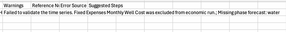 Since CAPEX is not a required assumption for running economics, failed Data Snap evaluations will not cause economics to fail for a given well. Instead, we will generate a warning and exclude CAPEX rows from economics based on failed evaluations.