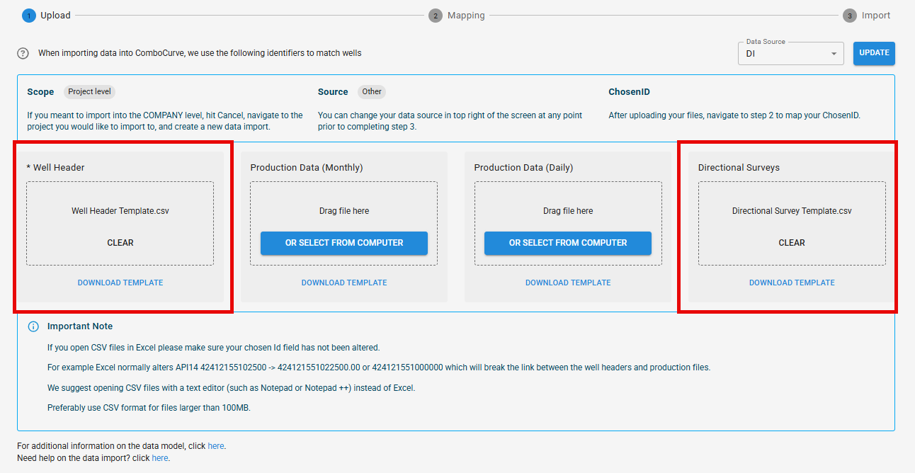 ComboCurve: Data Import How-To & FAQs . Continuing to import directional survey data drag and drop directional survey files into the designated destination.