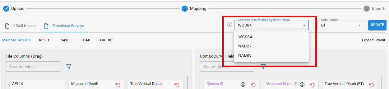 3 different coordinate system standards exist for how to interpret geography data (WGS84, NAD27, and NAD83). It is important to select which one the user's company uses to get accurate well locations on ComboCurve's mapping feature.