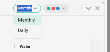 Once the table has been populated, it will automatically aggregate the headers you have selected in the metrics manager. Additionally, within the time-series table, you have the ability to choose between monthly and daily data as well as change the streams you are viewing.
