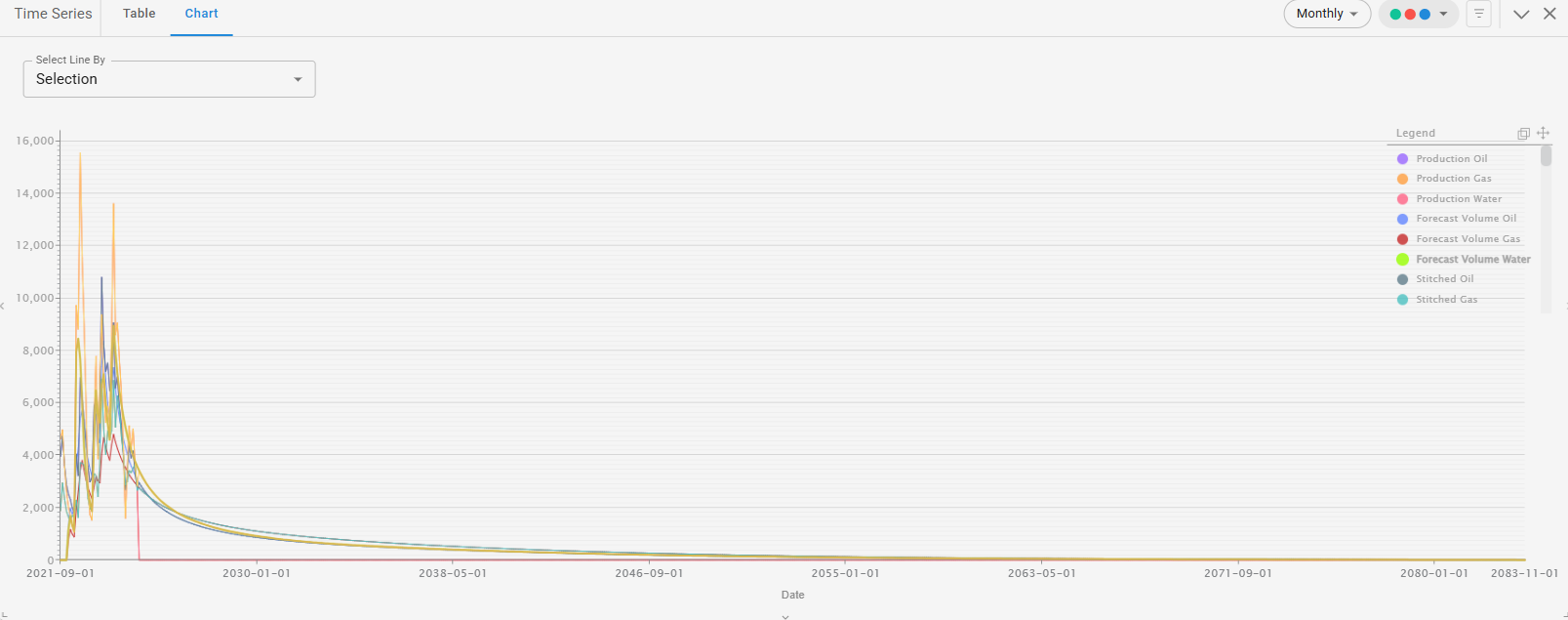 To view our roll-up chart, navigate to the chart button on the top of the time-series table widget.