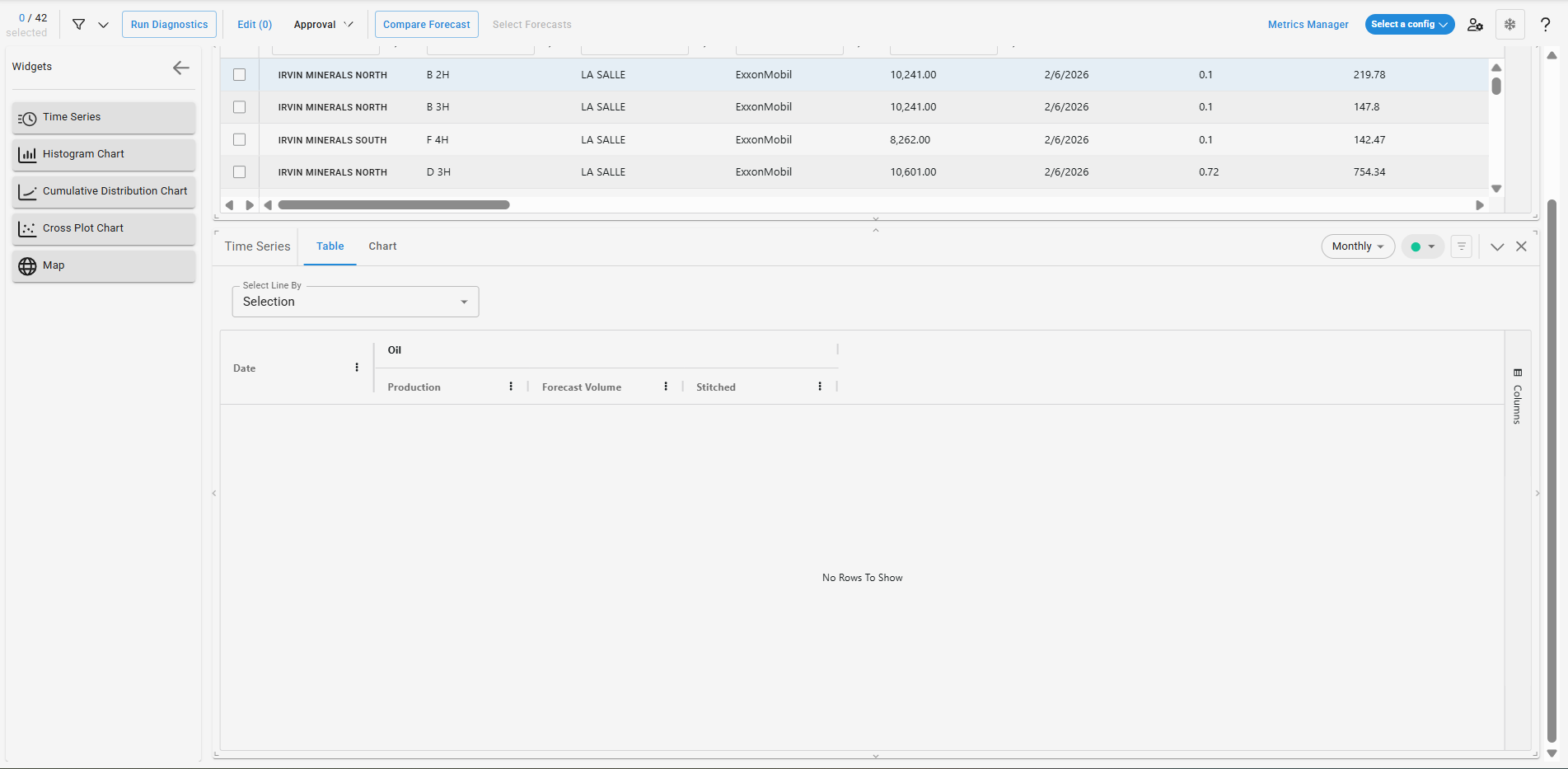 Once you've ran forecasts for all of your wells, navigate to the Diagnostics button at the top of the screen.