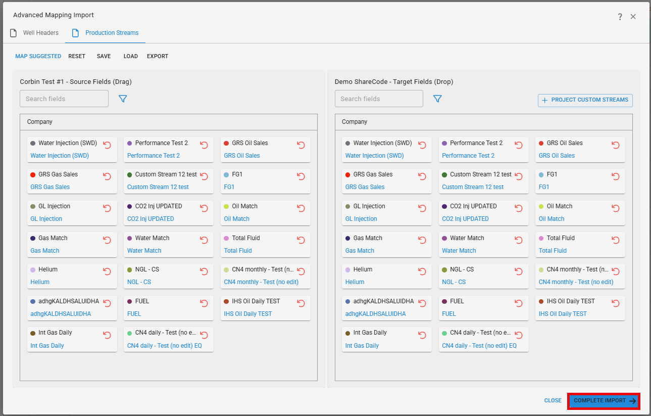 ComboCurve: Data Import How-To & FAQs. After confirming the mapping, click Complete Import. The copied project will then be available in your environment.