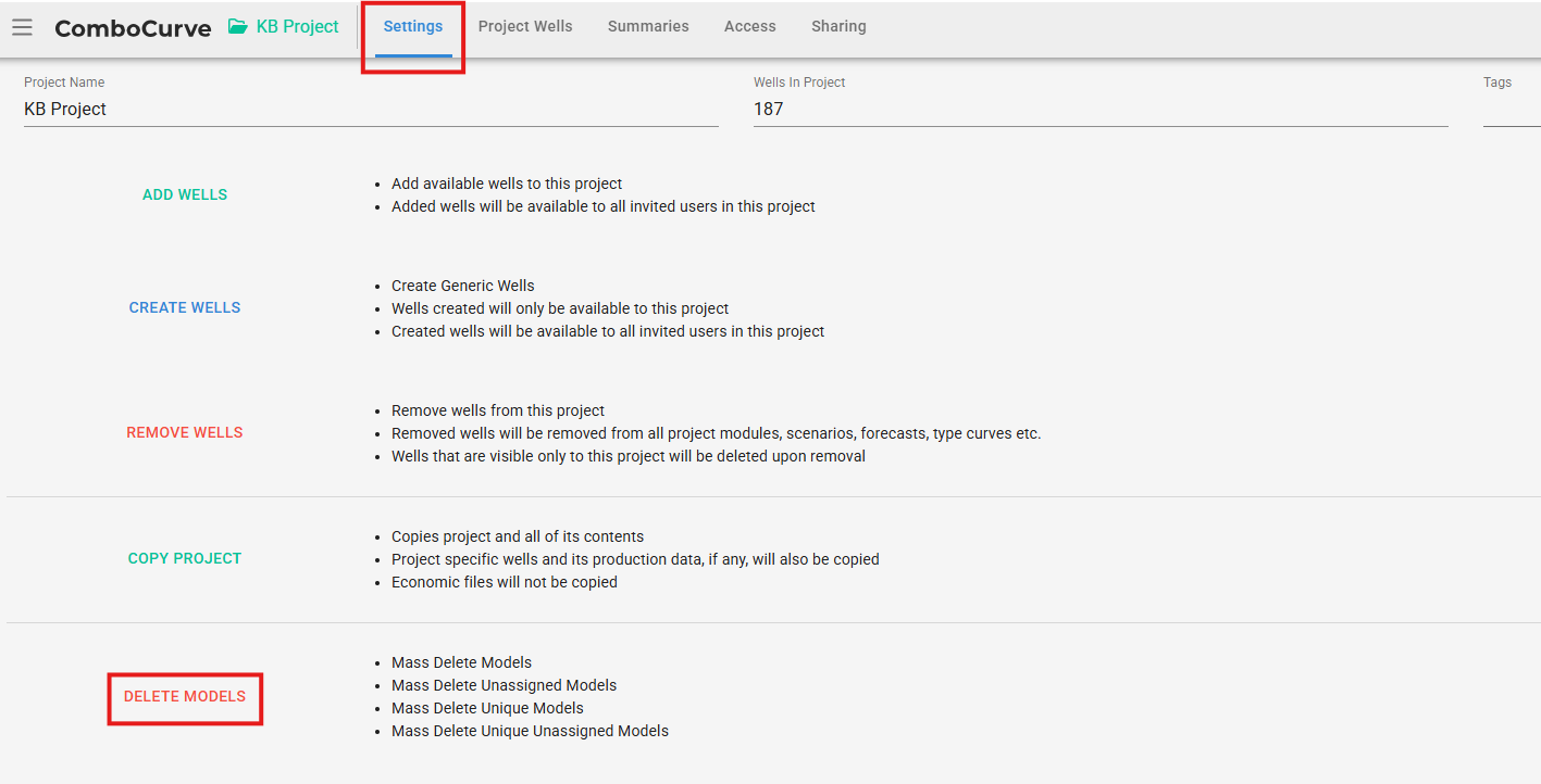 As your project grows, you may accumulate a large number of unique or project level models. ComboCurve provides a bulk delete tool to help you clean up.