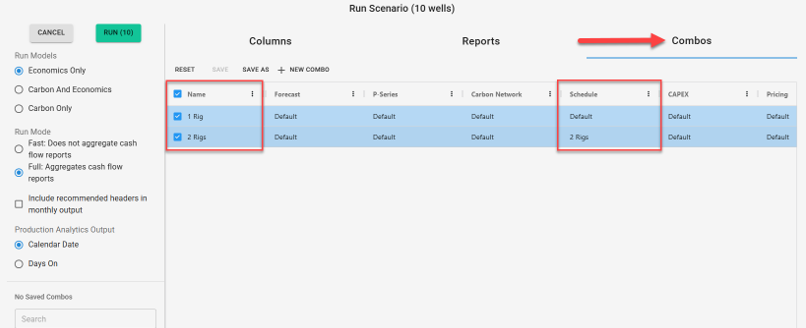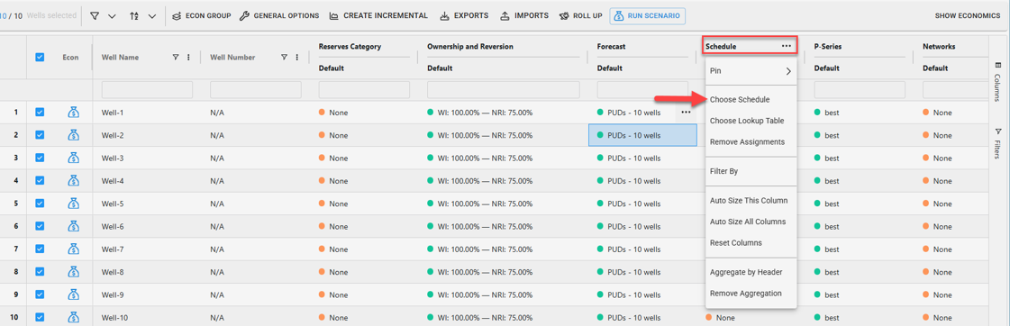 Utilizing schedules is a great way to dynamically assess timing changes in Scenarios and simply manage different first production date and capital spend assumptions. This article will cover how to apply a schedule within the Scenario Module. For more information on creating schedules, see