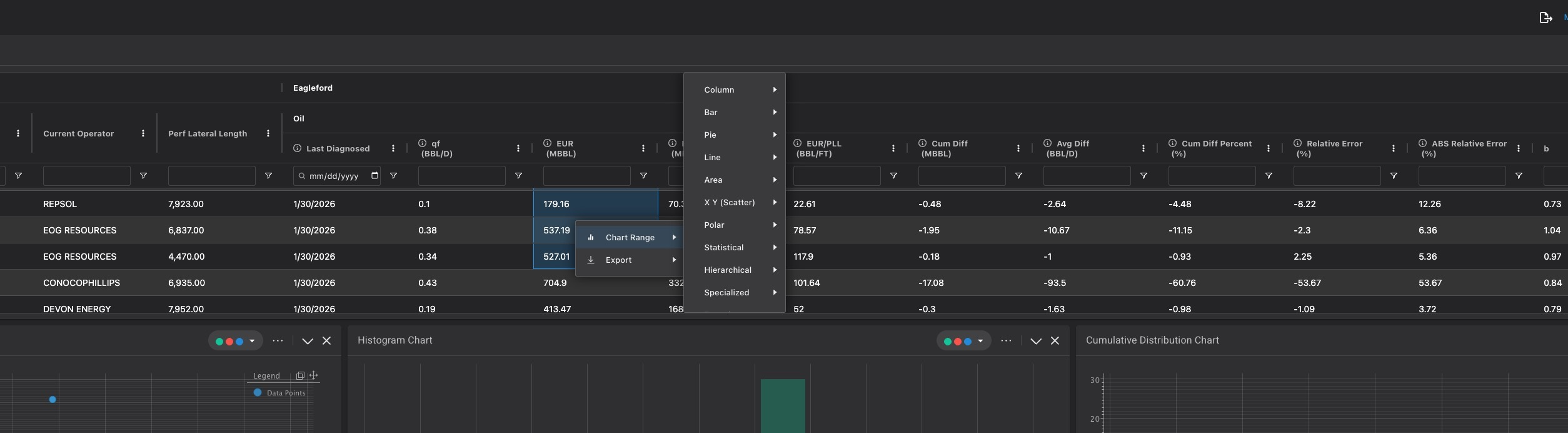 AG Charts available on Scalar and Time Series Table - the user now has the ability to create ad hoc charts on the scalar table in Diagnostics. You can select a range of data and right click to create custom charts