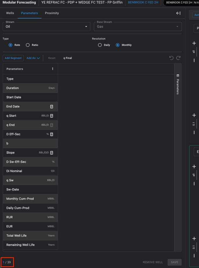 Modular Forecasting Well Indexing - While in Modular Forecasting users can see the count on the bottom left as another way to indicate which well the user is on