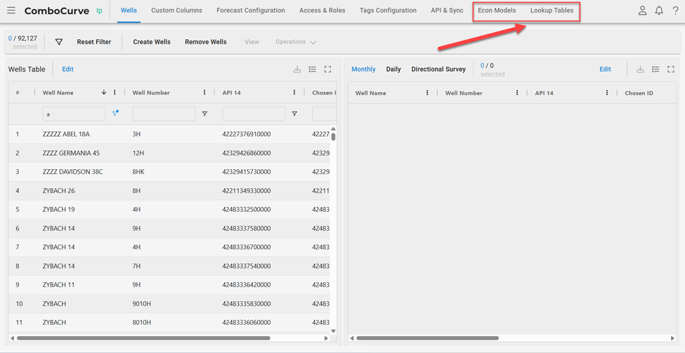 Headers not referenceable: Chosen ID, INPT ID, Aries ID, API14, etc.