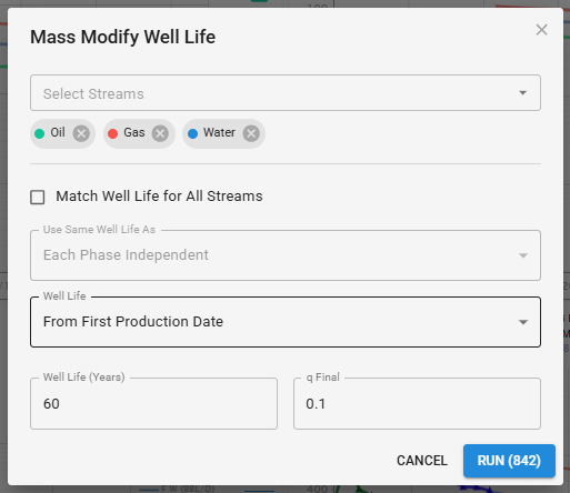 Mass Modify Well Life will adjust all the wells life to a