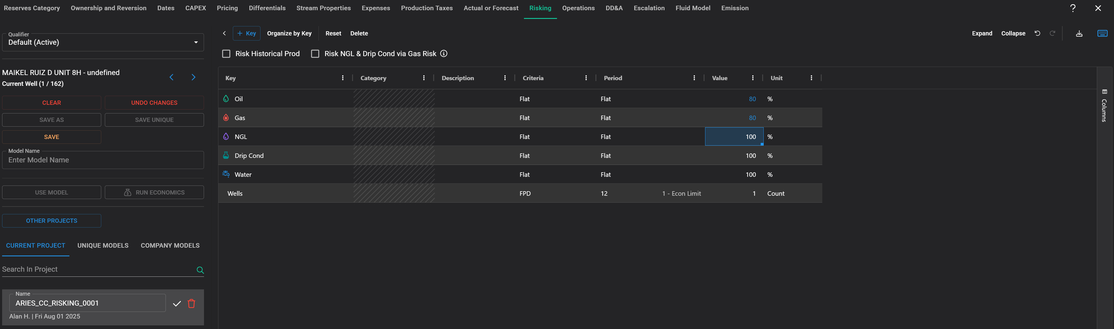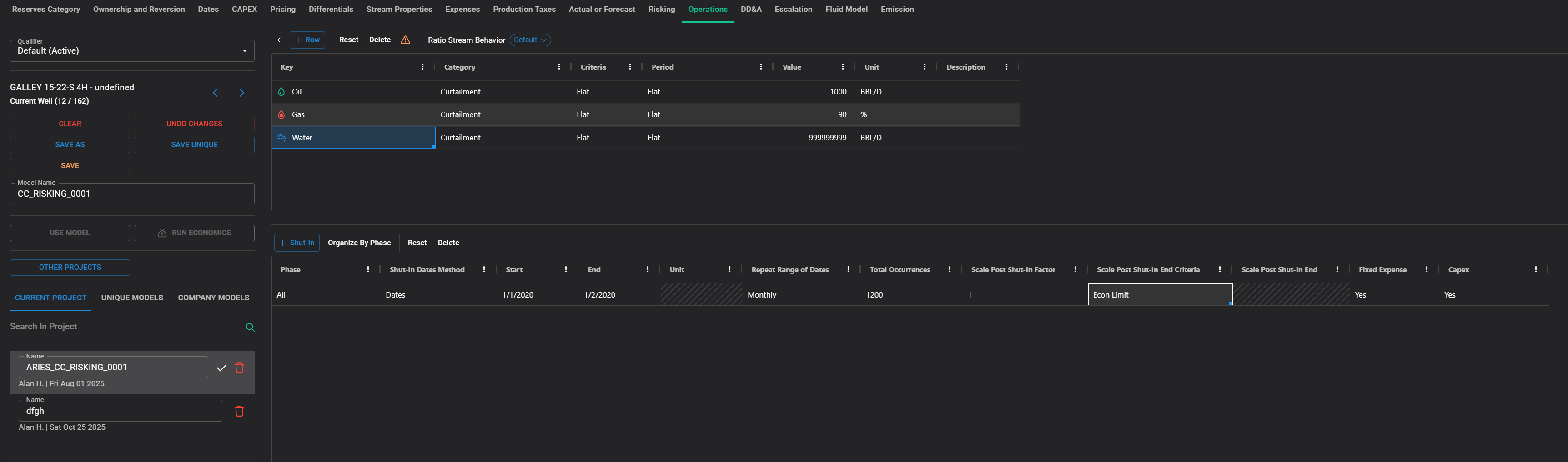 - Fixed Expenses and CAPEX defaults are “Yes” and allow scheduled charges to occur during the shut-in period. Per unit production charges such as variable expenses and production tax (%) will not be applied during the shut-in period.