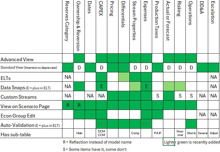 - Scenario Table allows navigating back to the property grid to edit and run econ for when you navigate away using the settings or Scenario Wells or Reports